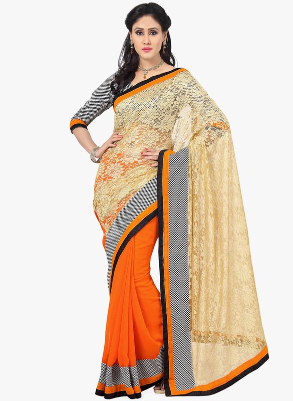 Jabong has Saree Swarg Orange Printed Saree for Rs.3,065.00 with Free Shipping