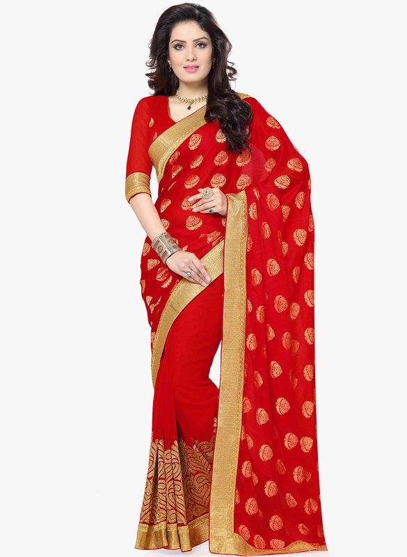 Jabong has Saree Swarg Red Embellished Saree for Rs.4,895.00 - Rs.2,448.00 (Instant Discount) = Rs.2,447.00 with Free Shipping