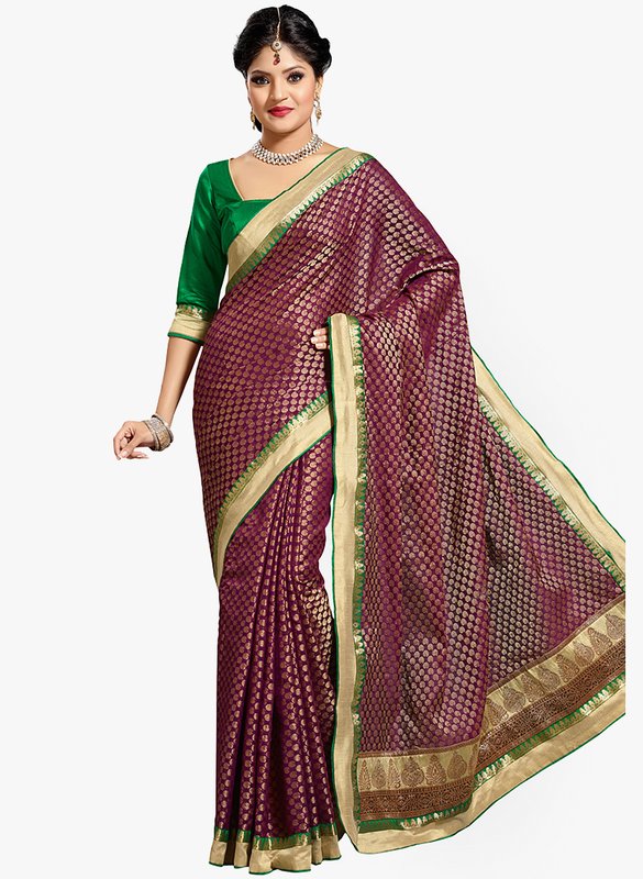 Jabong has Saree Swarg Wine Embellished Saree for Rs.1,990.00 with Free Shipping