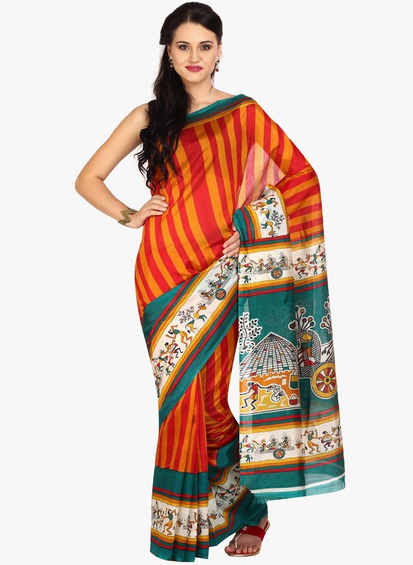 Jabong has Satrang Red Striped Silk Saree for Rs.749.00 with Free Shipping