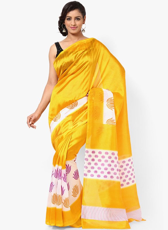 Jabong has Satrang Silk Blend Yellow Saree for Rs.1,199.00 with Free Shipping