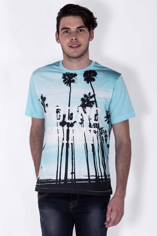 Sera Printed Men's Round Neck Light Blue T-Shirt