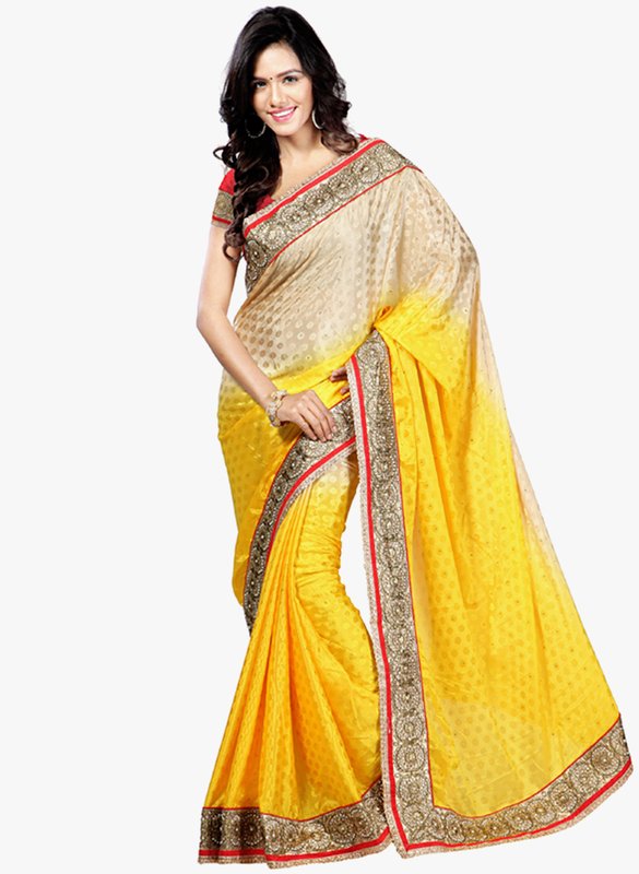 Jabong has Shonaya Yellow Embroidered Saree for Rs.14,650.00 - Rs.11,720.00 (Instant Discount) = Rs.2,930.00 with Free Shipping