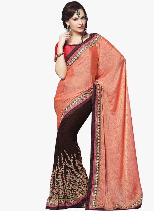 Silk Bazar Peach Embellished Saree