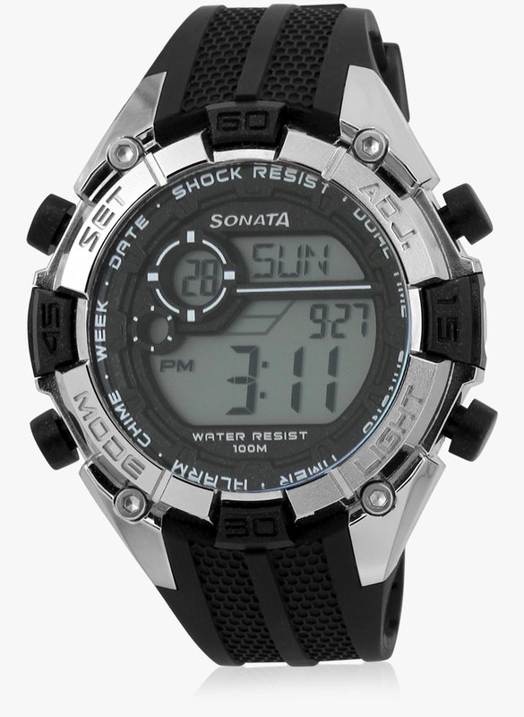Sonata Ng77026pp01j Black/Grey Digital Watch