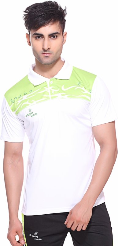 Sport Sun Self Design Men's Polo Neck White T-Shirt