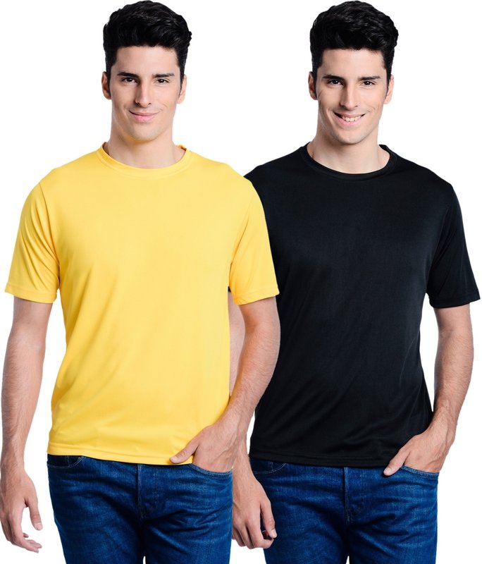 Superjoy Solid Men's Round Neck Black, Yellow T-Shirt(Pack of 2)