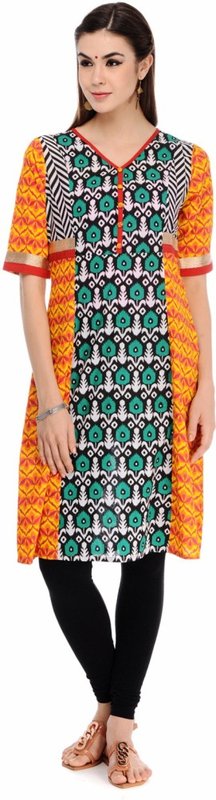 Flipkart has Taaga Printed Women's Straight Kurta(Yellow) for Rs.1,399.00 - Rs.910.00 (Instant Discount) = Rs.489.00 with Free Shipping