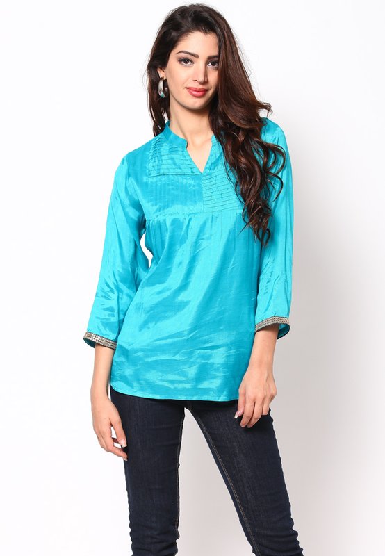 Jabong has Tangerine Clothing Blue Front Pintuck Kurta With Embroidery At Cuff for Rs.1,199.00 with Free Shipping
