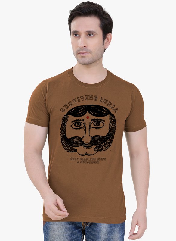 Tantra Brown Printed Round Neck T-Shirt