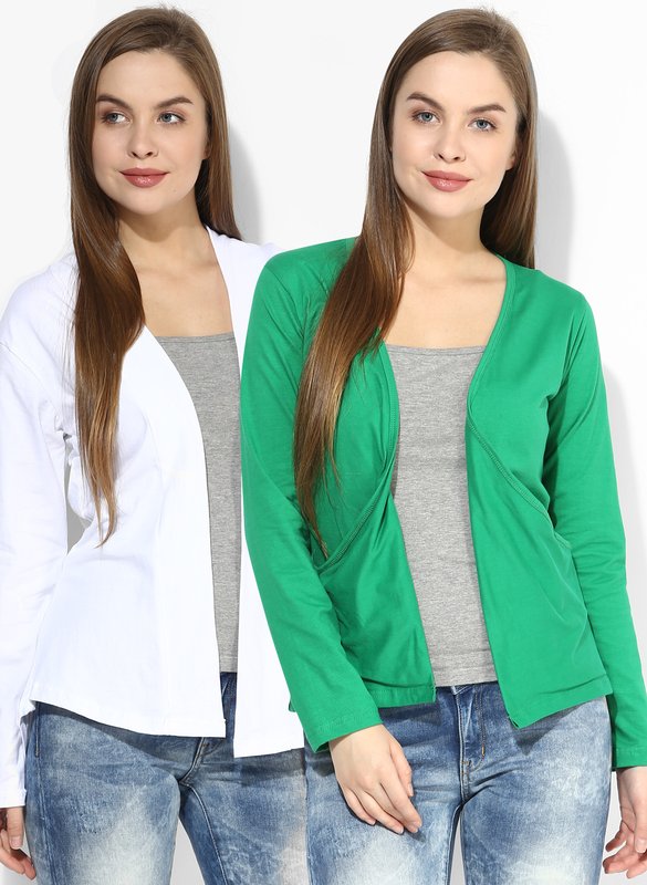 Jabong has Ten On Ten Pack Of 2 Multicoloured Solid Shrugs for Rs.1,499.00 with Free Shipping