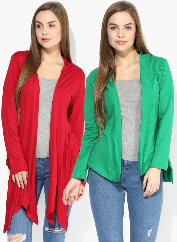 Jabong has Ten On Ten Pack Of 2 Multicoloured Solid Shrugs for Rs.1,499.00 with Free Shipping