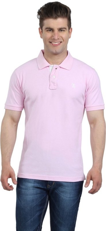 The Cotton Company Solid Men's Polo Neck Pink T-Shirt