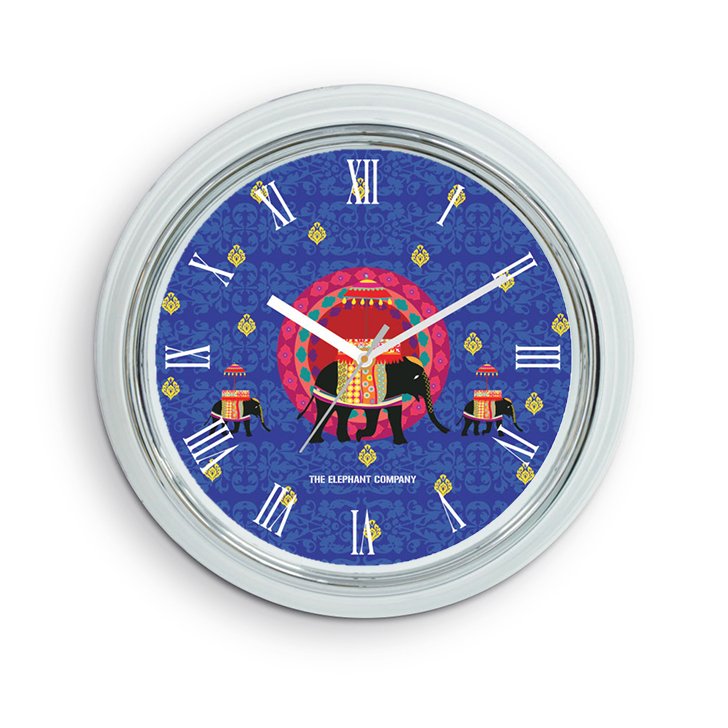 The Elephant Company Elephant Butti Wall Clock Blue And Chrome