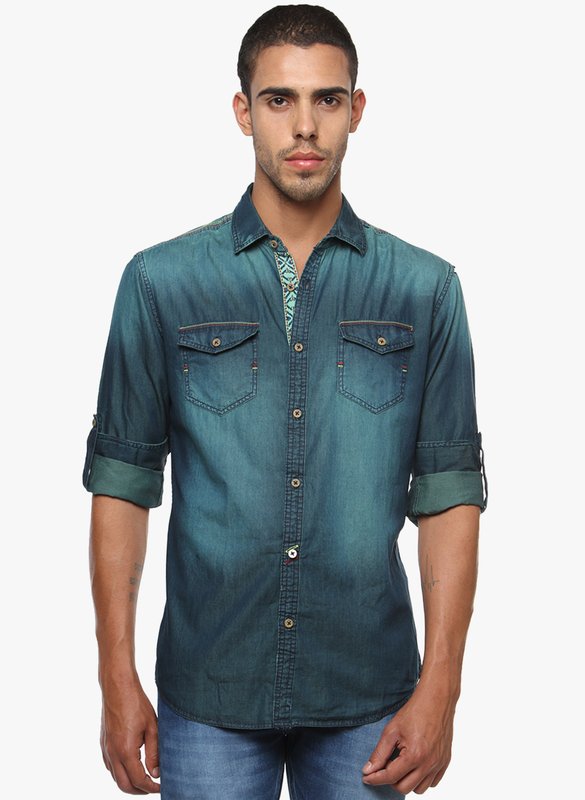 Jabong has The Indian Garage Co. Blue Washed Slim Fit Casual Shirt for Rs.1,499.00 with Free Shipping