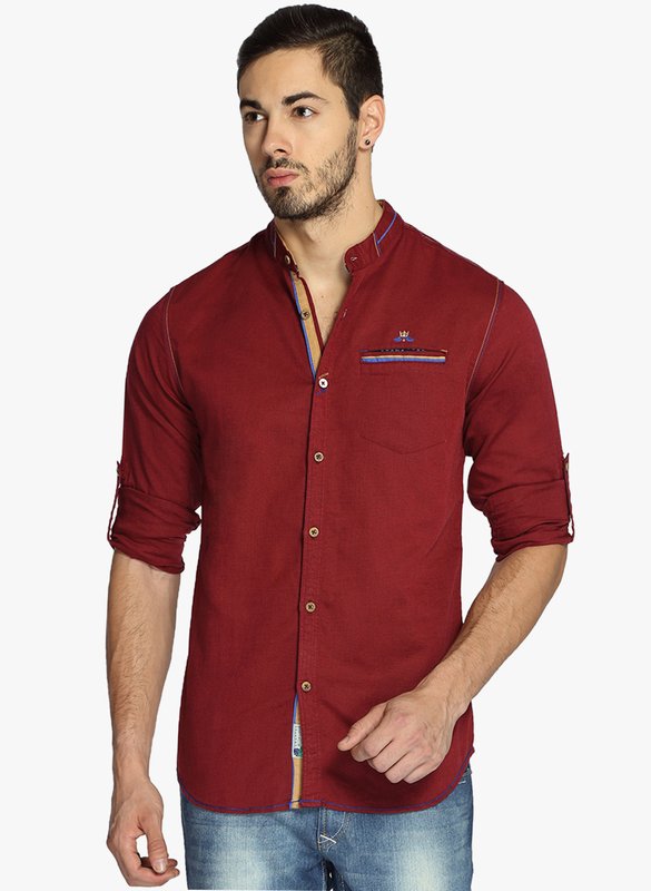 Jabong has The Indian Garage Co. Maroon Solid Slim Fit Casual Shirt for Rs.1,399.00 with Free Shipping