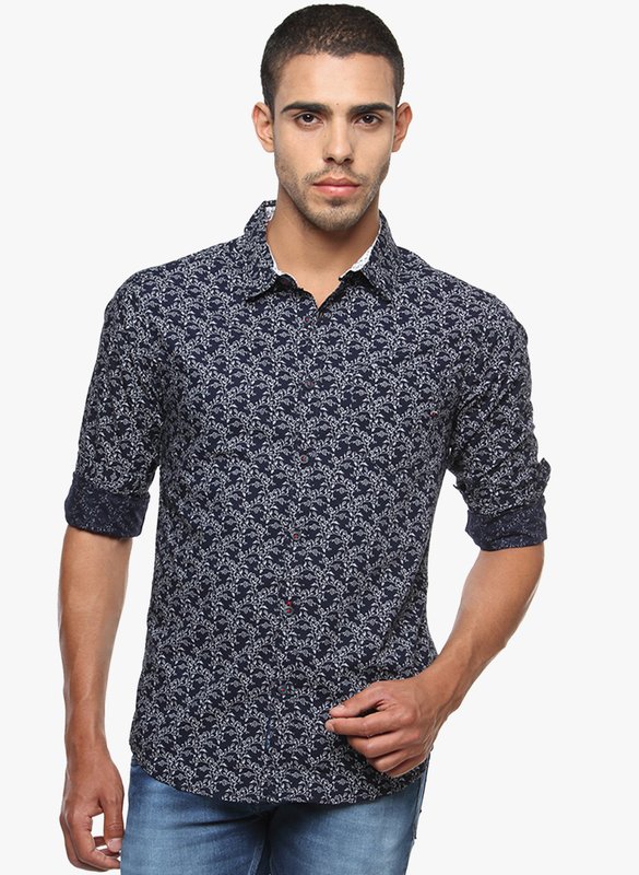 Jabong has The Indian Garage Co. Navy Blue Printed Slim Fit Casual Shirt for Rs.1,899.00 with Free Shipping
