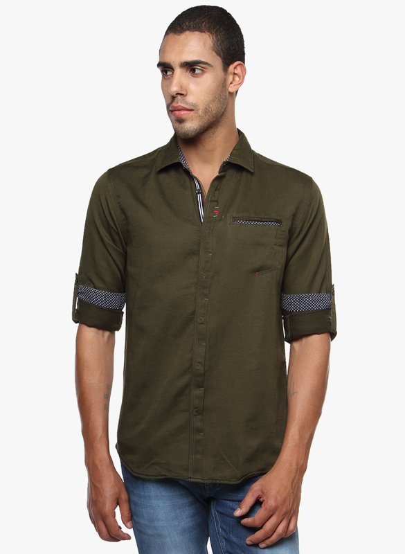 Jabong has The Indian Garage Co. Olive Solid Slim Fit Casual Shirt for Rs.1,499.00 with Free Shipping