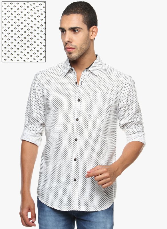 Jabong has The Indian Garage Co. White Printed Slim Fit Casual Shirt for Rs.1,899.00 with Free Shipping