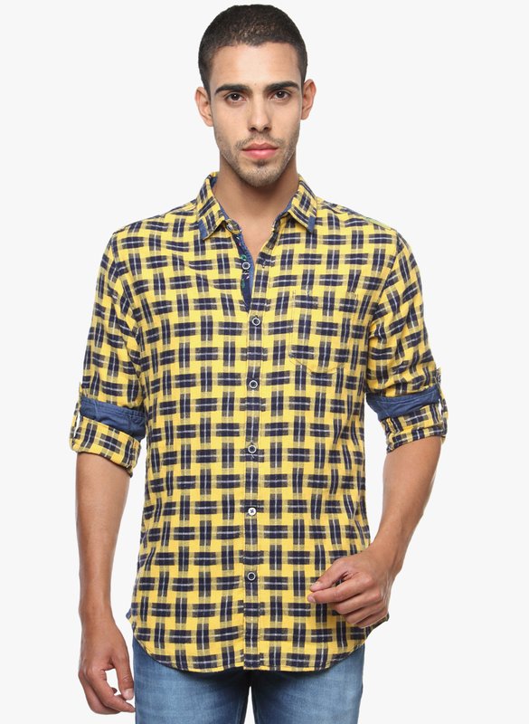 Jabong has The Indian Garage Co. Yellow Check Slim Fit Casual Shirt for Rs.1,799.00 with Free Shipping