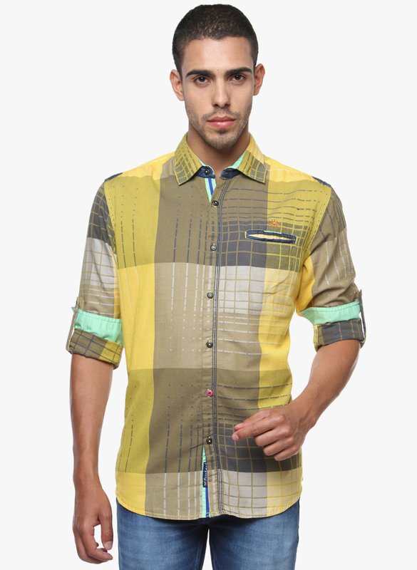 Jabong has The Indian Garage Co. Yellow Check Slim Fit Casual Shirt for Rs.1,999.00 with Free Shipping