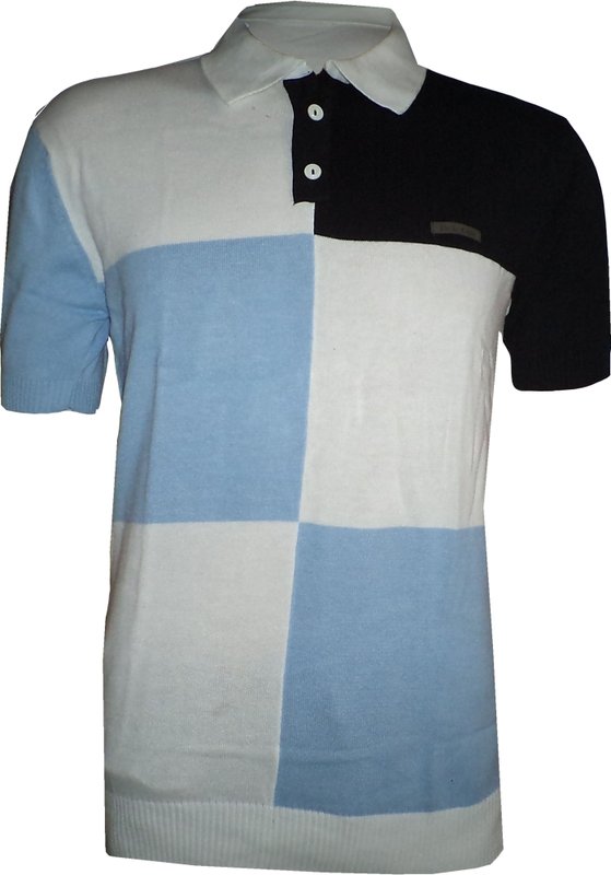 Tick Lish Striped Men's Polo Neck White, Light Blue, Black T-Shirt
