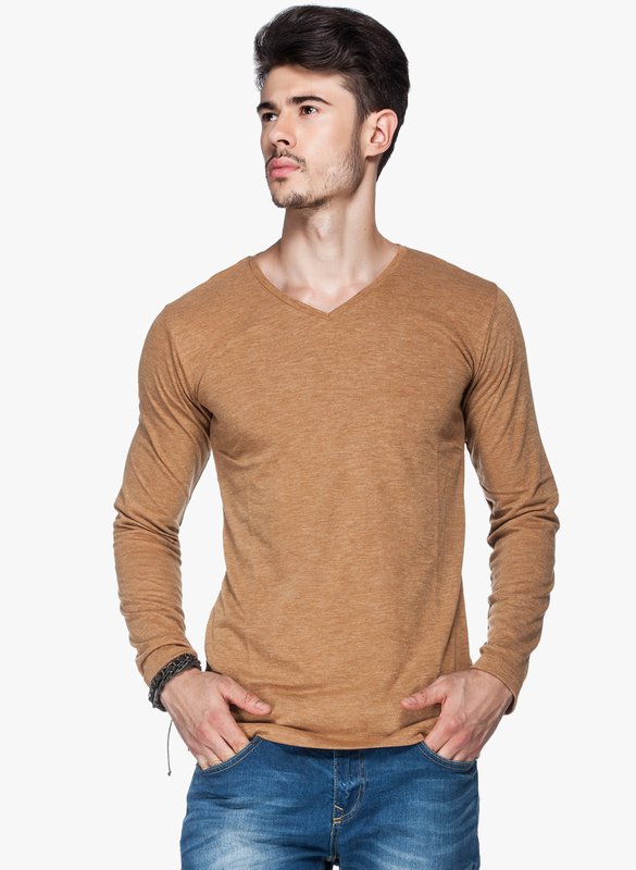 Jabong has Tinted Brown Solid V Neck T-Shirt for Rs.675.00 - Rs.202.00 (Instant Discount) = Rs.473.00 with Free Shipping