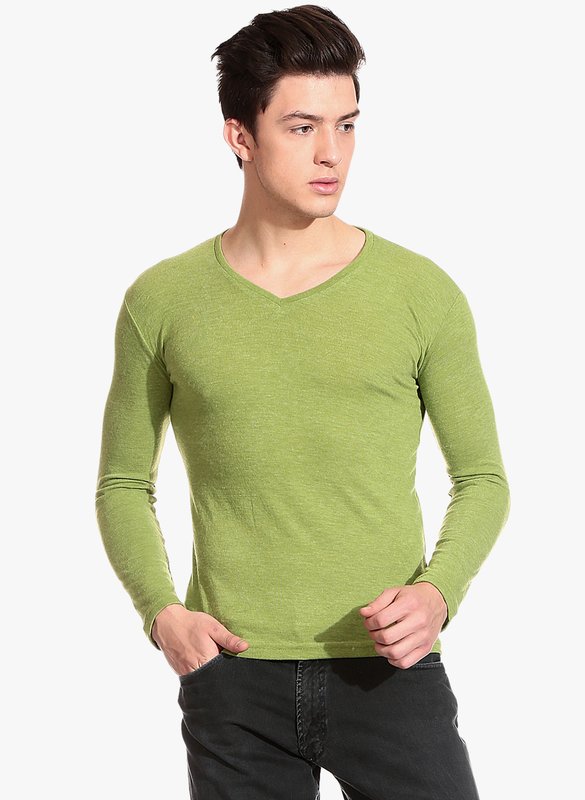 Jabong has Tinted Green Solid V Neck T-Shirt for Rs.675.00 with Free Shipping