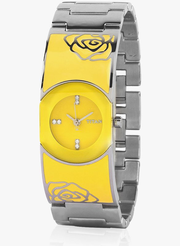 Titan Purple 9818SM04 Silver/Yellow Analog Watch