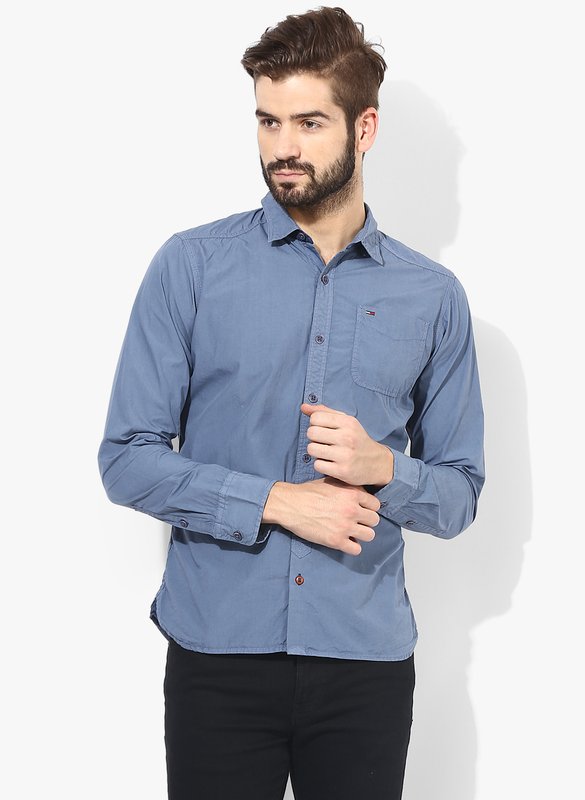 Jabong has Tommy Hilfiger Blue Solid Slim Fit Casual Shirt for Rs.3,799.00 with Free Shipping