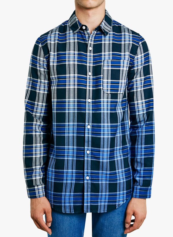 TOPMAN Blue Checked Regular Fit Casual Shirt