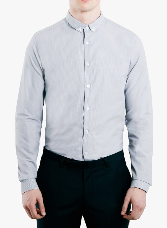 TOPMAN Light Grey Striped Slim Fit Formal Shirt