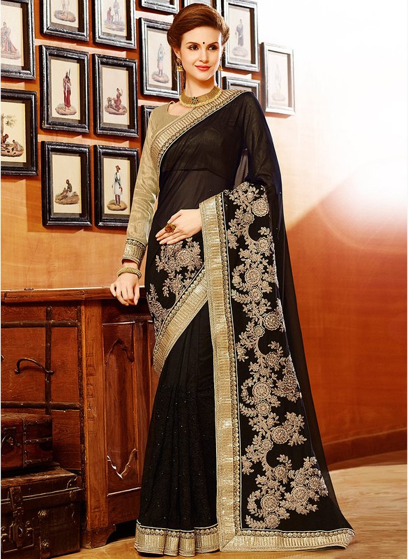 Touch Trends Black Embroidered Saree