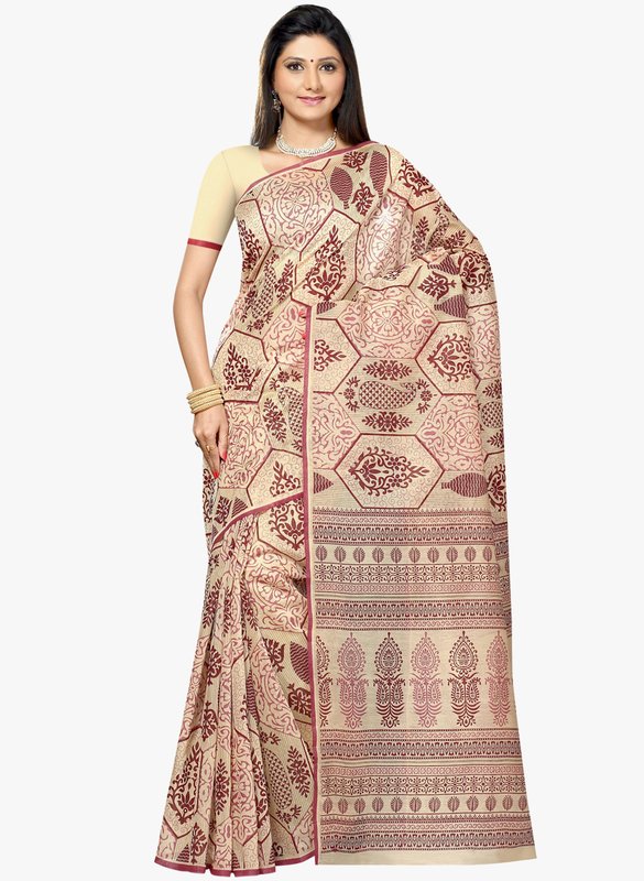 Triveni Sarees Beige Printed Saree
