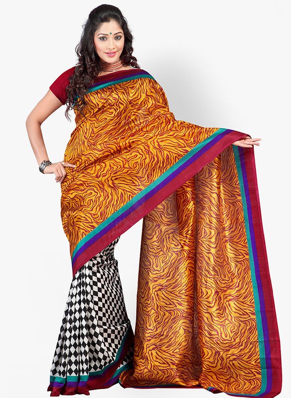 Jabong has Triveni Sarees Mustard Yellow Printed Saree for Rs.618.00 - Rs.62.00 (Instant Discount) = Rs.556.00 with Free Shipping