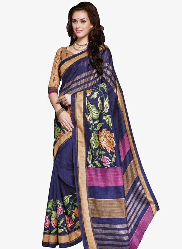 Triveni Sarees Navy Blue Printed Saree