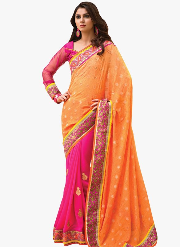 Jabong has Triveni Sarees Orange Embroidered Saree for Rs.5,985.00 - Rs.3,720.00 (Instant Discount) = Rs.2,265.00 with Free Shipping