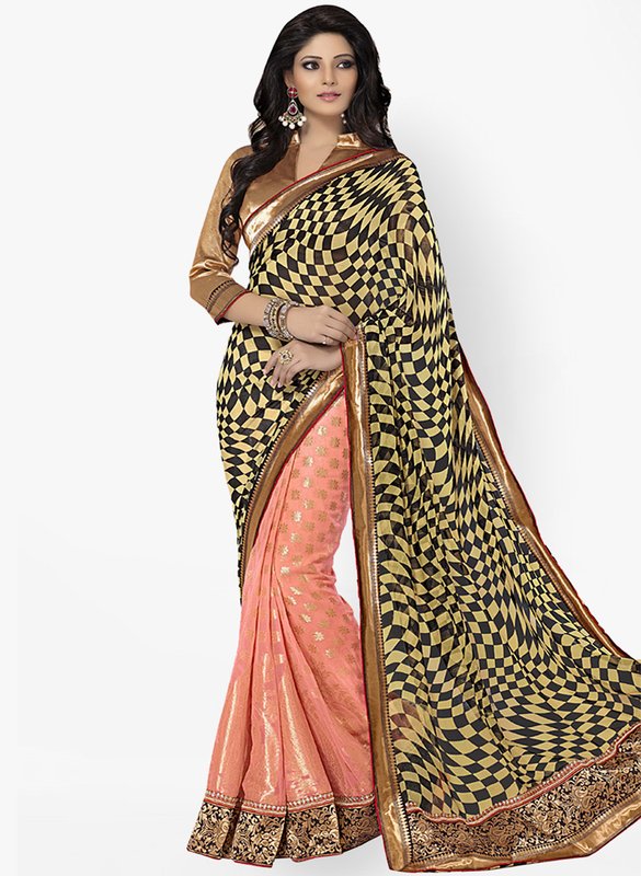 Jabong has Triveni Sarees Peach Embroidered Saree for Rs.3,100.00 with Free Shipping
