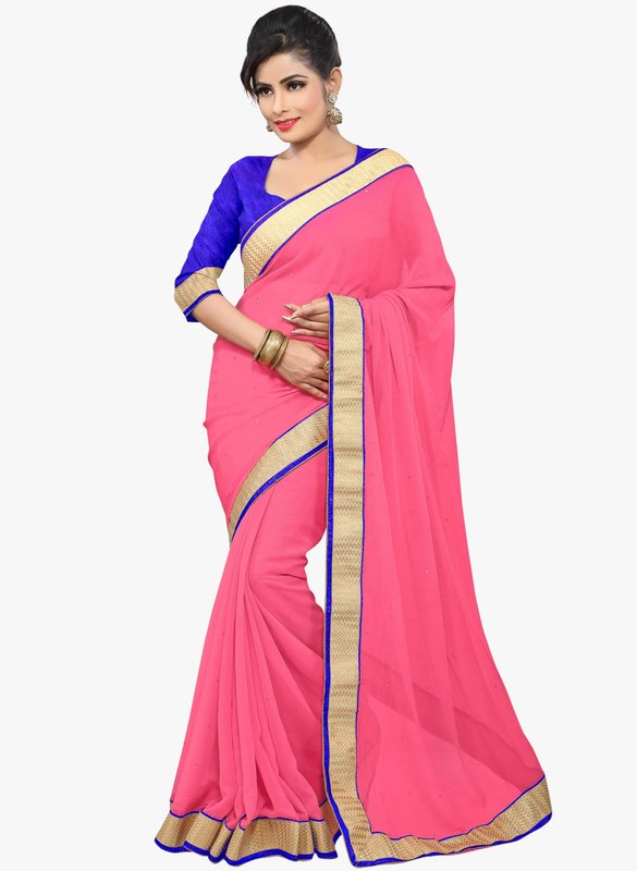 Jabong has Triveni Sarees Pink Border Worked Festival Saree for Rs.1,785.00 - Rs.179.00 (Instant Discount) = Rs.1,606.00 with Free Shipping