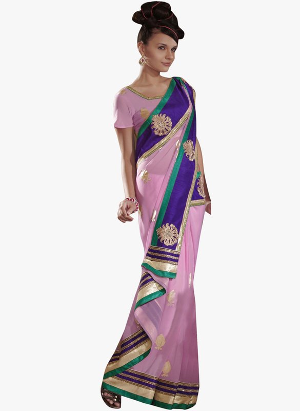 Jabong has Triveni Sarees Pink Embroidered Saree for Rs.7,485.00 - Rs.749.00 (Instant Discount) = Rs.6,736.00 with Free Shipping