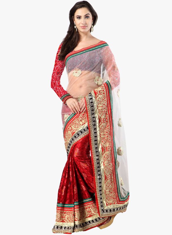 Jabong has Triveni Sarees Red Embroidered Saree for Rs.4,250.00 - Rs.1,033.00 (Instant Discount) = Rs.3,217.00 with Free Shipping