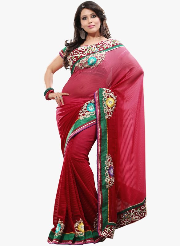 Jabong has Triveni Sarees Red Embroidered Saree for Rs.6,585.00 - Rs.3,986.00 (Instant Discount) = Rs.2,599.00 with Free Shipping