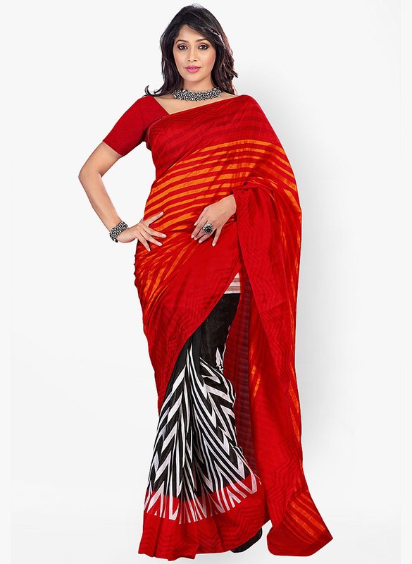 Jabong has Triveni Sarees Red Printed Saree for Rs.900.00 with Free Shipping