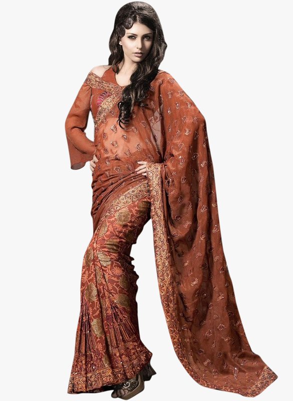Triveni Sarees Rust Embroidered Saree