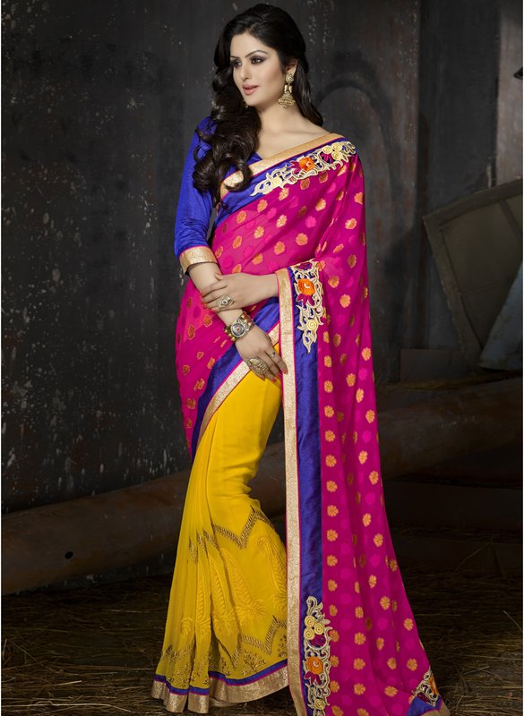 Jabong has Triveni Sarees Yellow Border Work Festive Saree for Rs.2,488.00 - Rs.249.00 (Instant Discount) = Rs.2,239.00 with Free Shipping