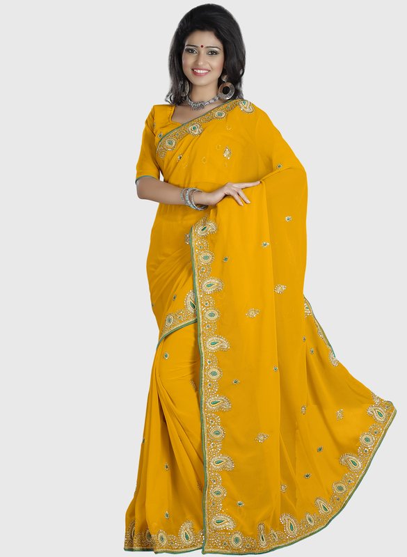 Jabong has Triveni Sarees Yellow Embellished Saree for Rs.2,625.00 - Rs.263.00 (Instant Discount) = Rs.2,362.00 with Free Shipping