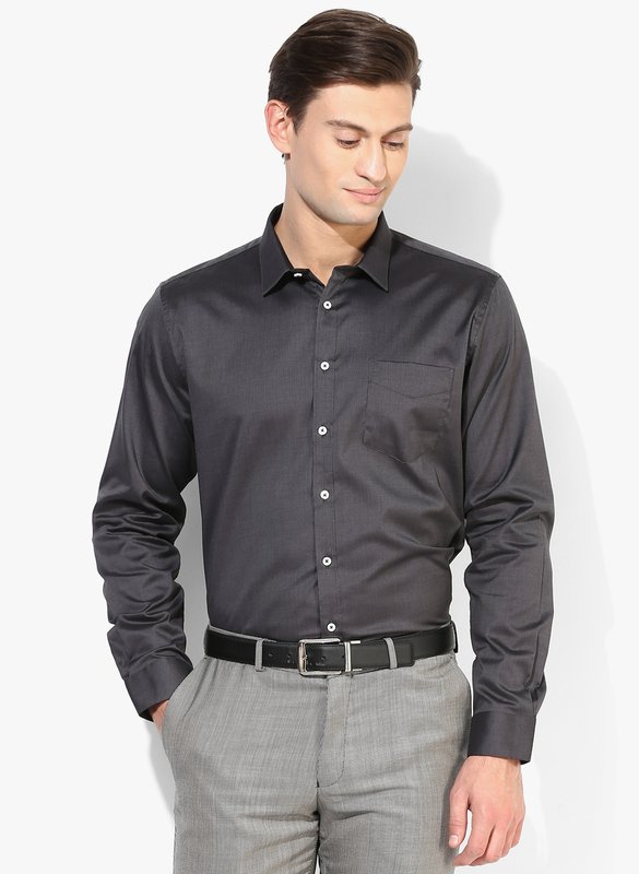 Van Heusen Dark Grey Solid Slim Fit Formal Shirt