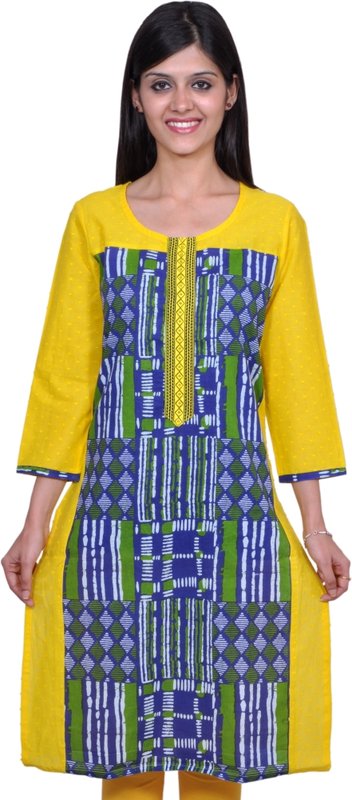 Flipkart has Vasudha Casual Printed Women's Kurti(Yellow, Blue) for Rs.959.00 - Rs.510.00 (Instant Discount) = Rs.449.00 with Free Shipping