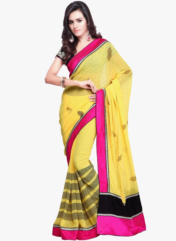 Jabong has Vishal Yellow Embellished Saree for Rs.5,270.00 - Rs.3,689.00 (Instant Discount) = Rs.1,581.00 with Free Shipping