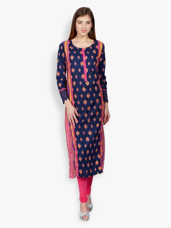 Flipkart has Vishudh Printed Women's Straight Kurta(Dark Blue, Yellow) for Rs.1,249.00 - Rs.601.00 (Instant Discount) = Rs.648.00 with Free Shipping